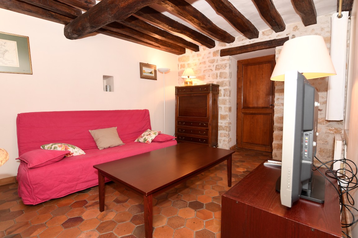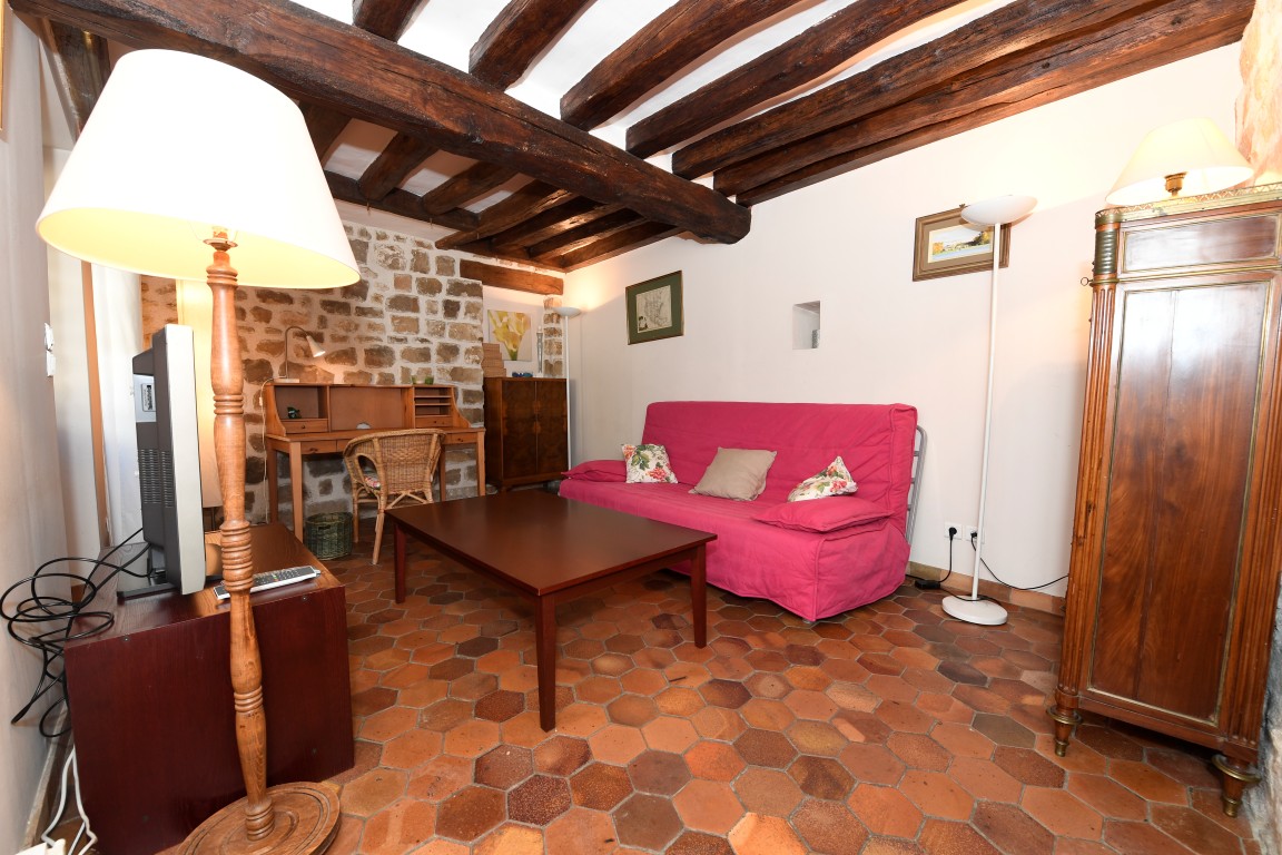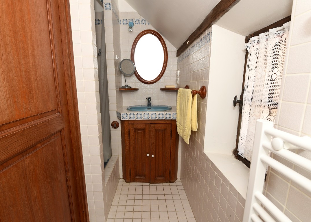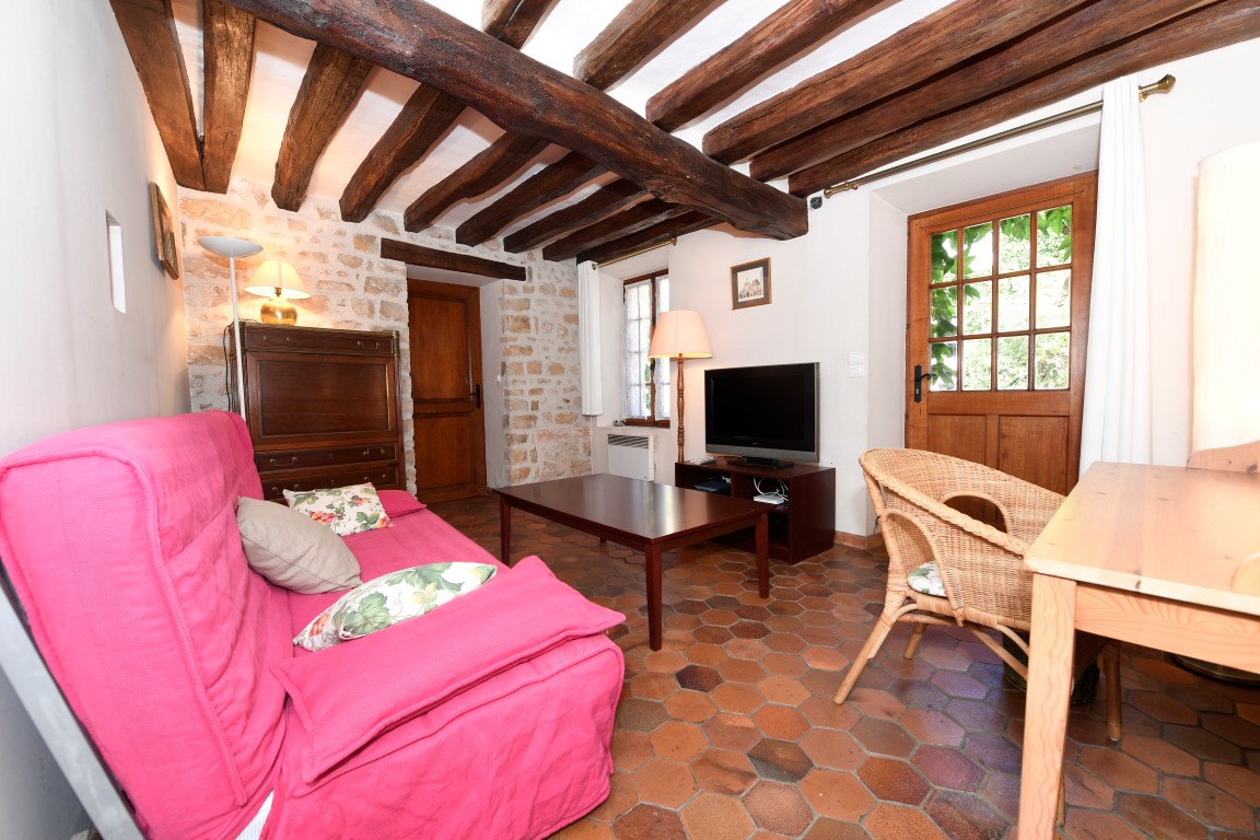 The Mews suite, a few meters across the yard from the Chateau, harbors a duplex apartment. It provides a master bedroom, a living room (or second bedroom), a study (or infant bedroom), a dining room with a kitchenette (with a dishwasher), a shower room and a storage. The Mews house shares with the Landlords residing in the Chateau the front yard, the garden and the laundry. It is perfect for a couple